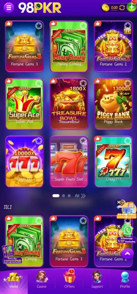 Moreover, the 98PKR game APK continues to gain immense popularity day by day, offering a chance to play a wide range of casino games that lead to actual cash rewards. Like the RS786 game, it provides a safe, smooth, and user-friendly experience for all kinds of players.